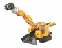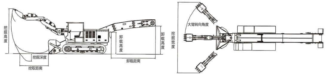 扒渣机配备铣挖头后,可在硬度4F的煤巷或半煤巷掘进时工作,无需炮掘。本机带有快速连接器,岩巷掘进时挖斗和铣挖头互换,爆破后用挖斗装渣,实现了一机两用;主要液压件采用德国进口正齿轮变速箱,由高扭矩的液压马达驱动,使铣挖头在更恶劣的高负荷作业条件下应付自如。配有内喷雾及高压外喷雾装置,灭尘效果好;使整机足够的重量,截割岩石时机身稳定。